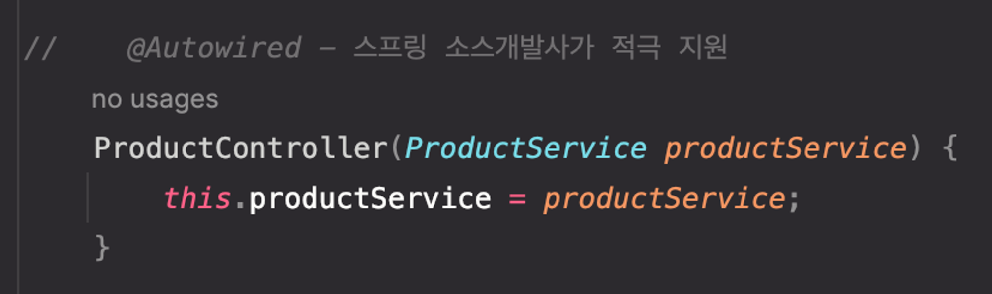 - 필드 : 테스트 코드 는 의존성 주입을 스프링이 하지 않고 내가 직접 할 수 있어야 한다는 단점